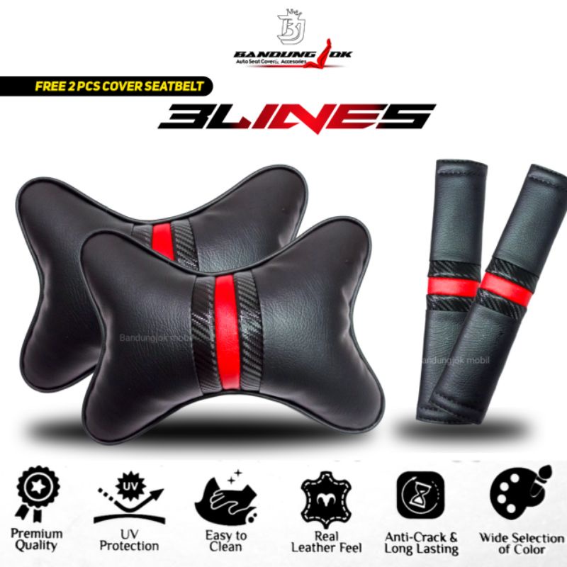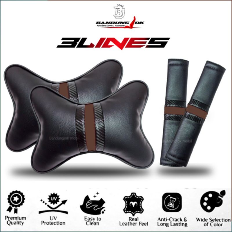 Bantal mobil set 2 in 1 Bantal leher kulit sintetis premium Bantal leher Bantal headrest
