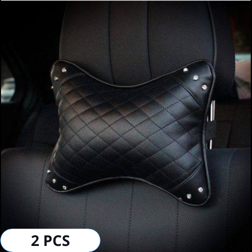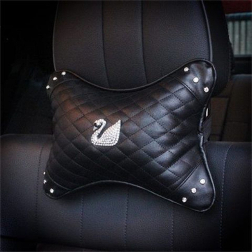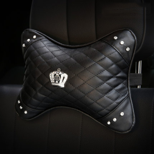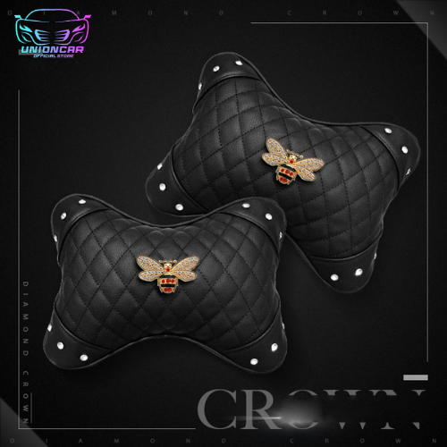 2 Pcs Bantal Leher Mobil Headrest Kepala Jok Mobil Mewah Elegan Bahan Kulit Premium Motif Mahkota, Angsa, Chanel, Lebah