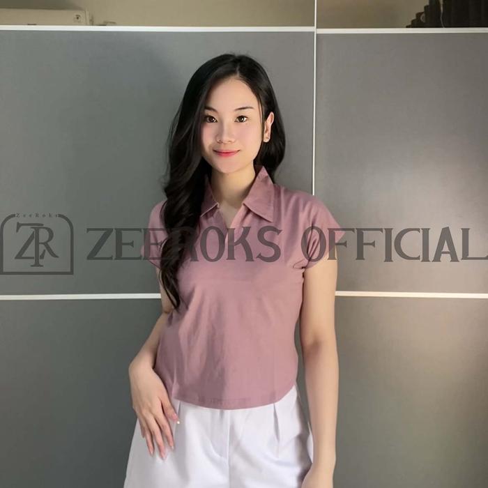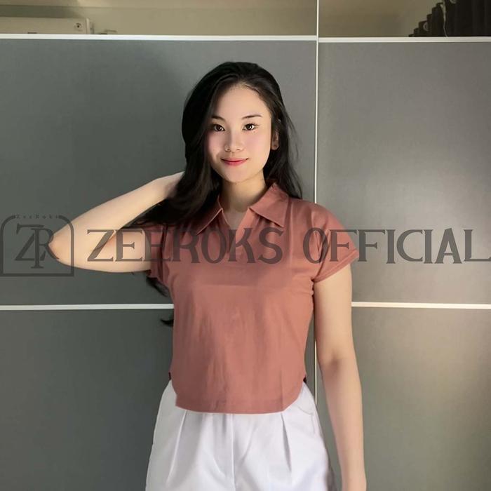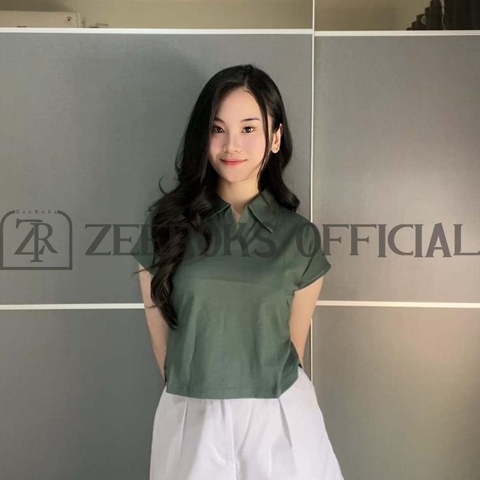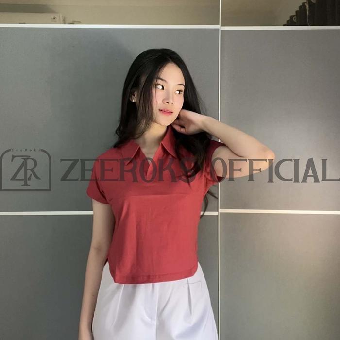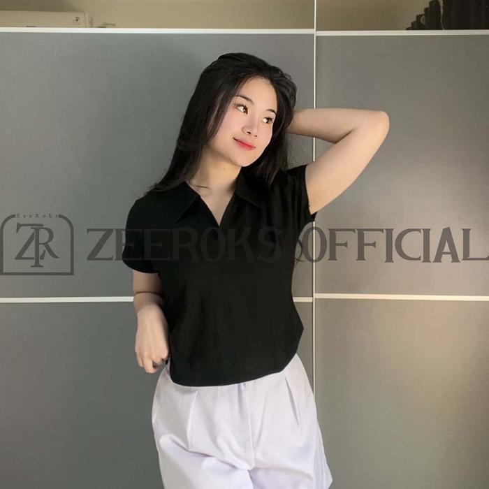 ZEEROKS Baju Wanita Crop Top Leher Kerah Polo Lengan Pendek Bahan Cotton Combed Kaos Cewek