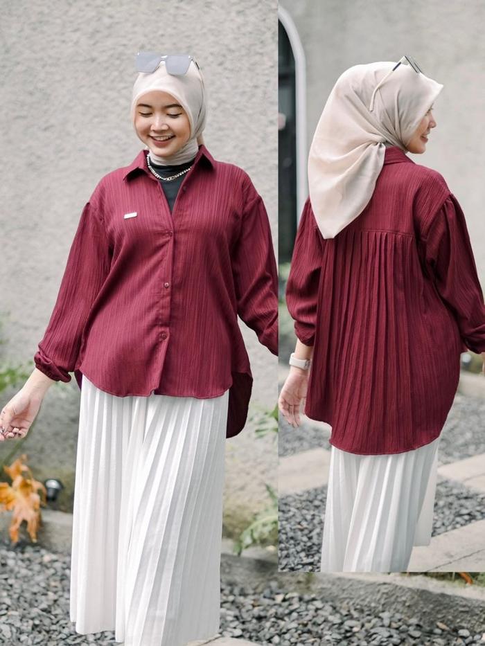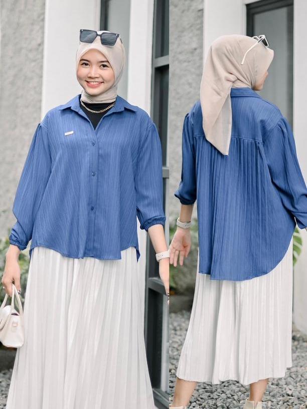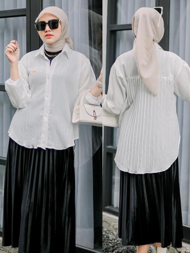 Munna Blouse Plisket Baby Crush Kemeja Blouse Kekinian Korean Style