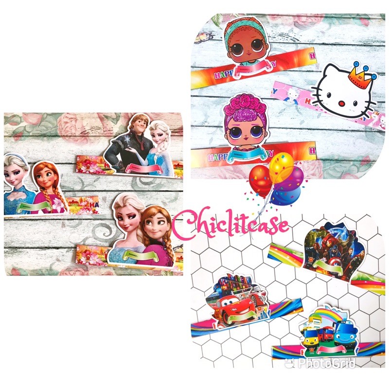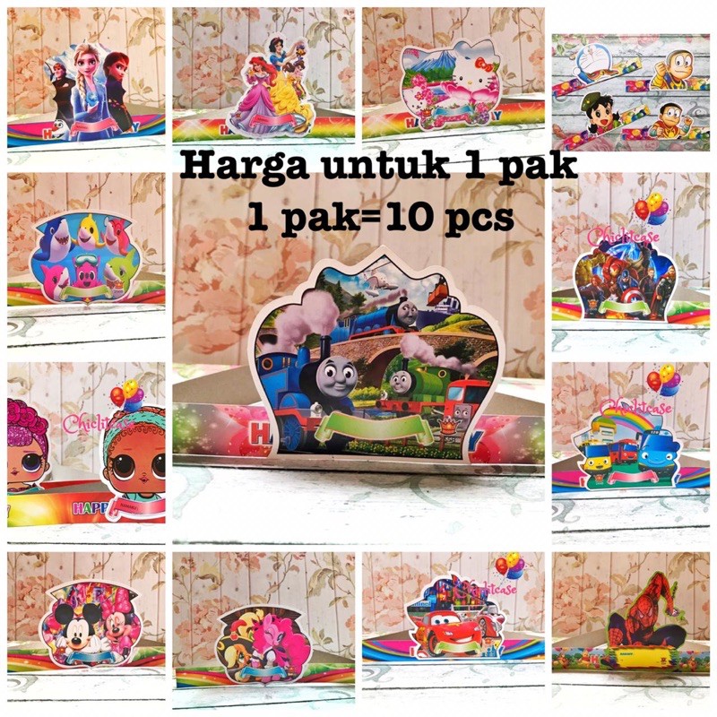 Topi Pesta Ulang Tahun Kartun Karakter Lucu 10 Pcs