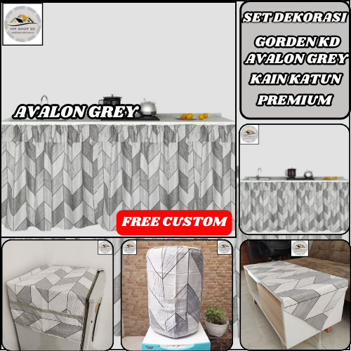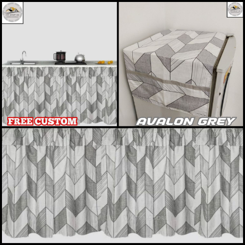 Set Dekorasi Gorden Kolong Dapur AVALON GREY Katun Premium