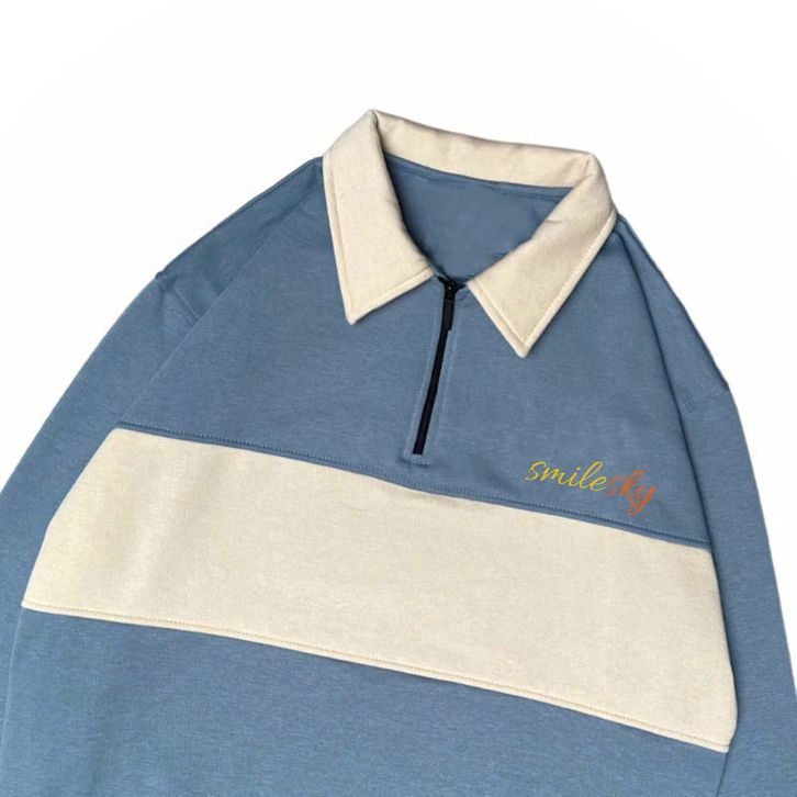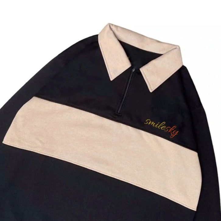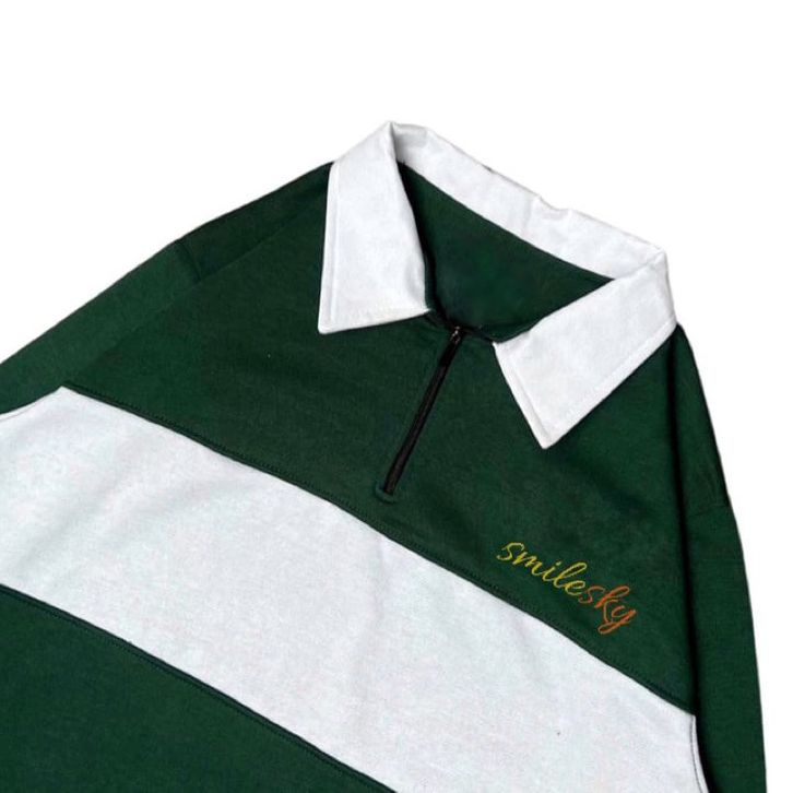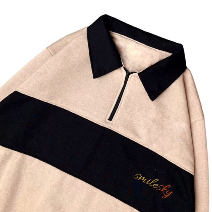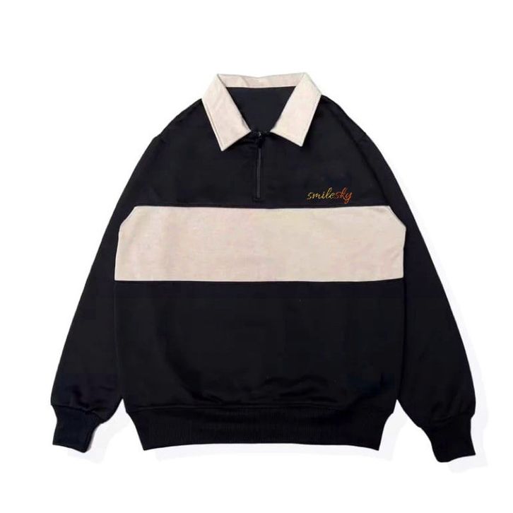 Smilesky Sweater Rugby Vintage Unisex - Crewneck Rugby Oversize Pria Wanita - Cotton Fleece Fit XL