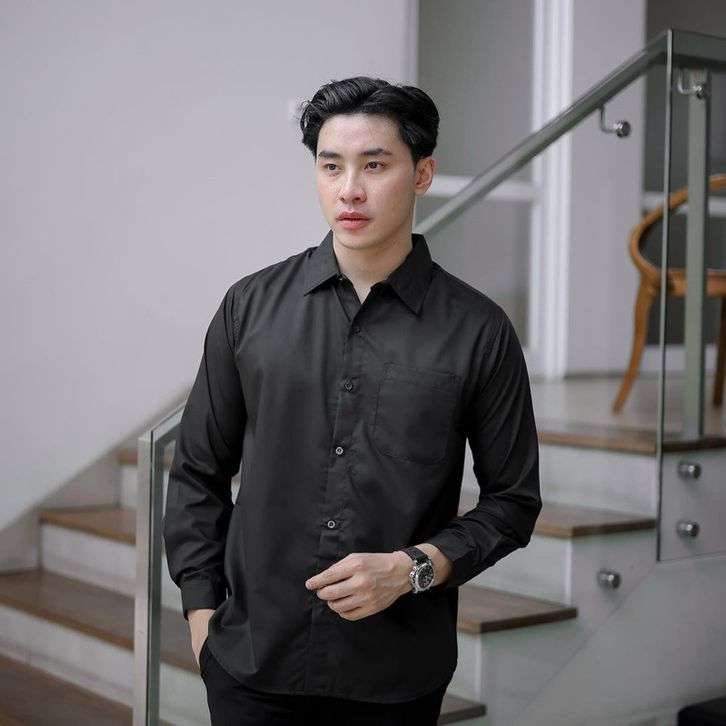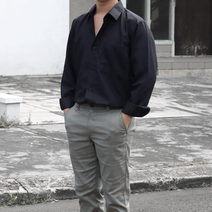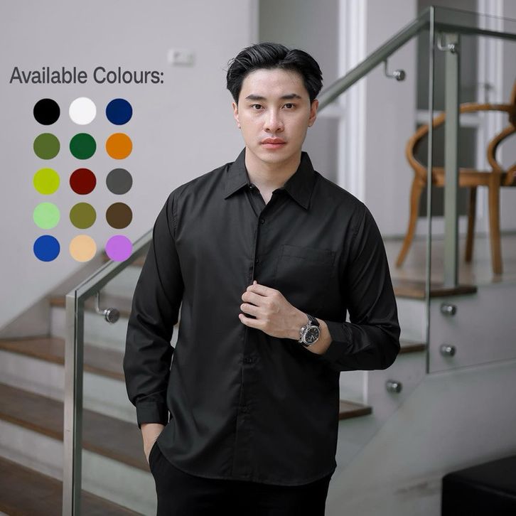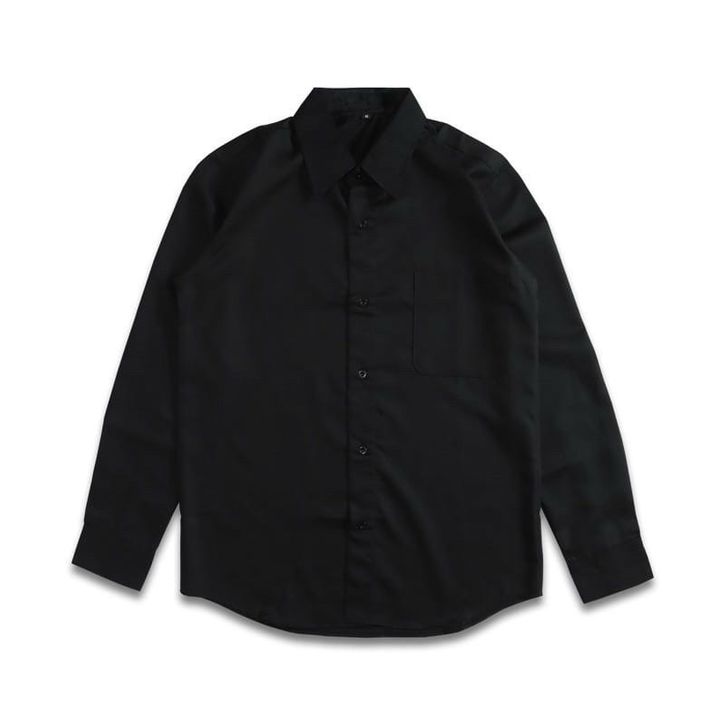 Smilesky Kemeja Pria Lengan Panjang - Kemeja Polos Cowok Formal Hitam Pique Cotton Toyobo M L XL
