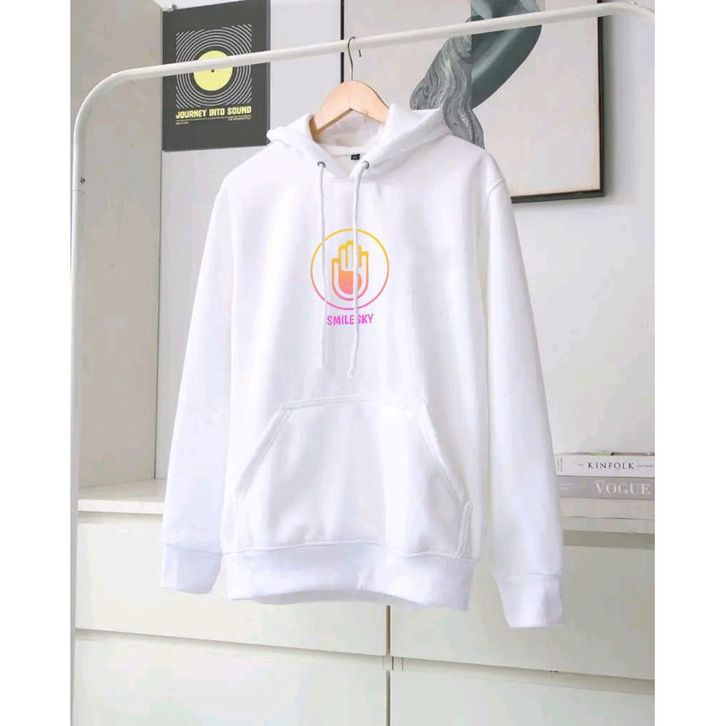 Smilesky Hoodie Oversize Putih Print Unisex Pria Wanita - Cotton Fleece