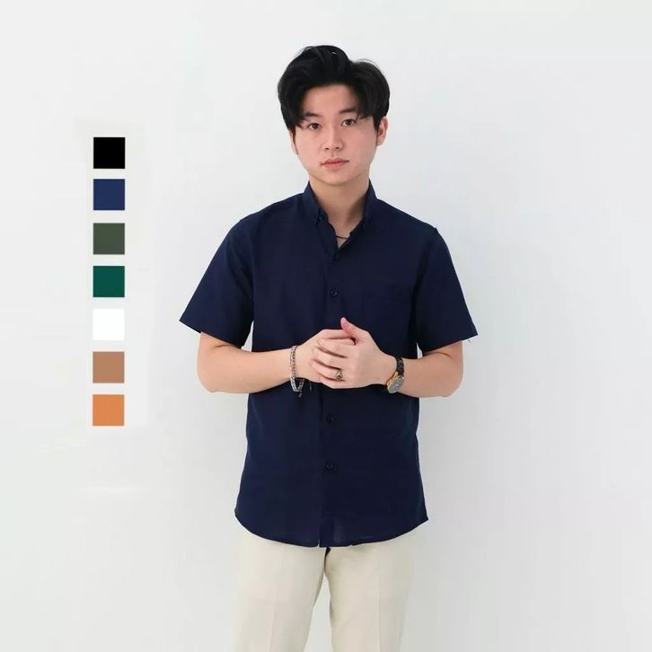 Smilesky Kemeja Pria Casual Lengan Pendek Slimfit Nyaman Dan Lembut - Katun Popline M L XL