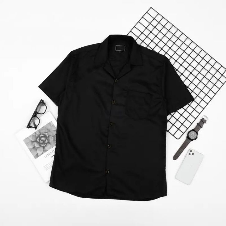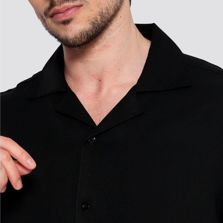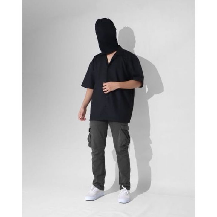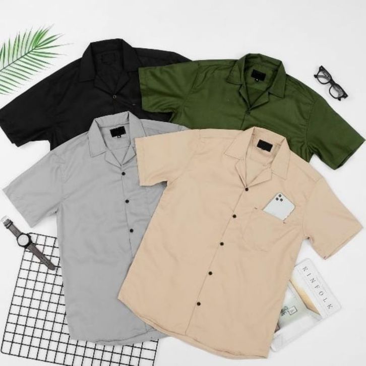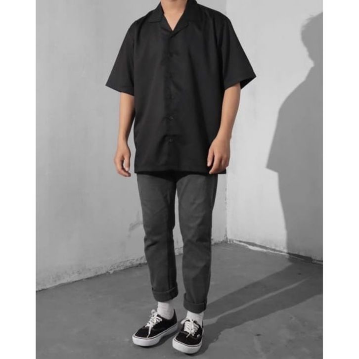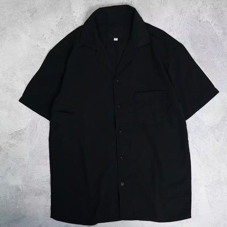 Basic Oversize - Kemeja Pria Polos XXL Lengan Pendek V Neck - Bowling Shirt Big Size