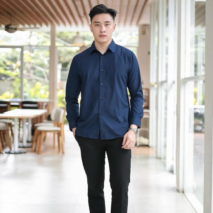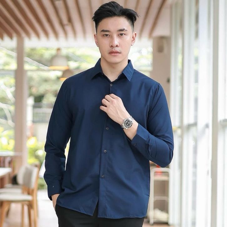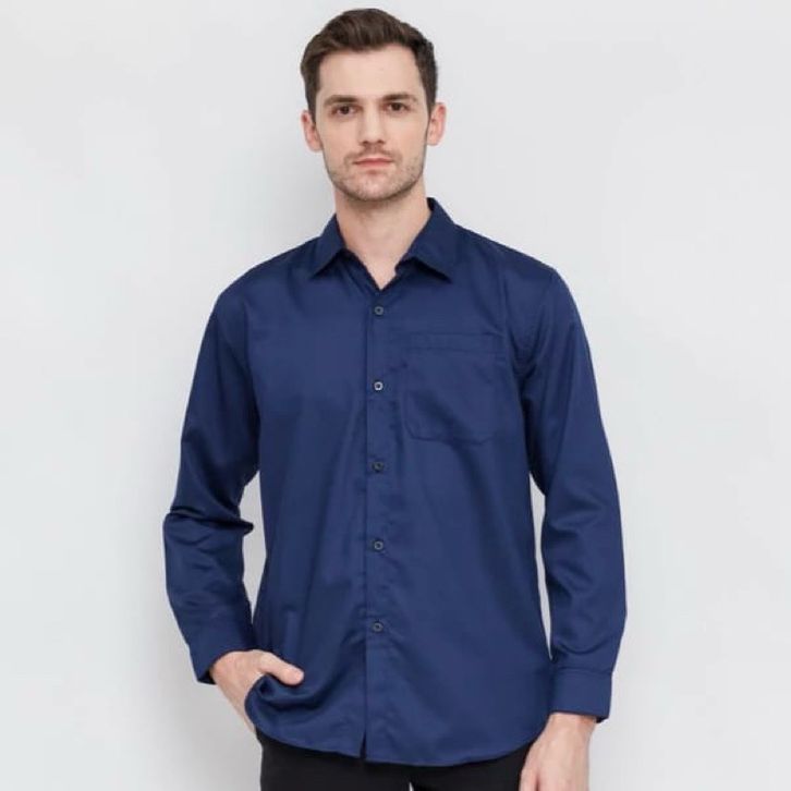 Smilesky Kemeja Navy Lengan Panjang - Kemeja Pria Pengan Panjang Biru Dongker - Cotton Toyobo M L XL