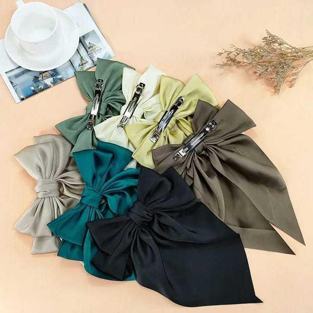 Iconic - Jepit Rambut Pita Panjang Besar Satin Kupu - Kupu Fashion Wanita Korea - Dongker