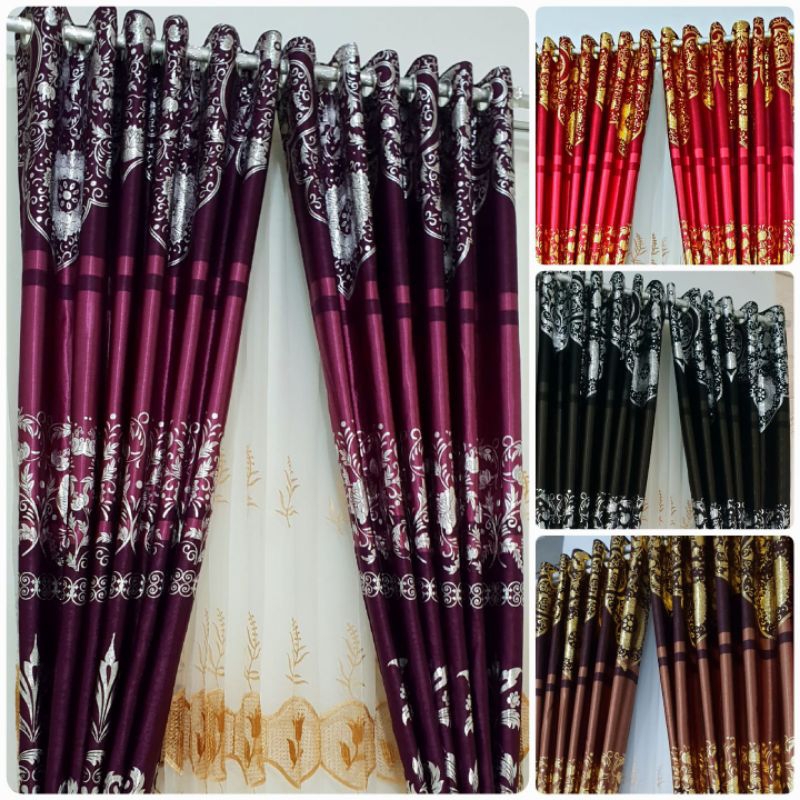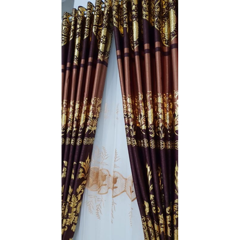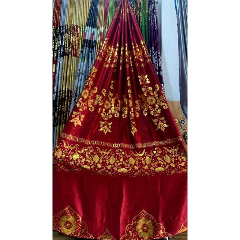 Gorden Bludru Print Emas Mewah Motif Relif