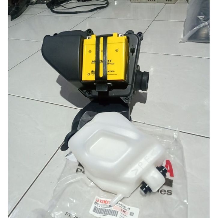 Box filter + karet, Botol oli + karet, Paket komplit, Filter + botol oli, Botol oli, Filter, Aki motobatt