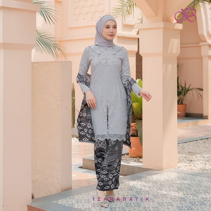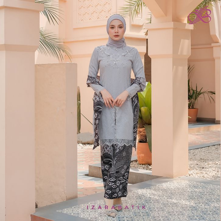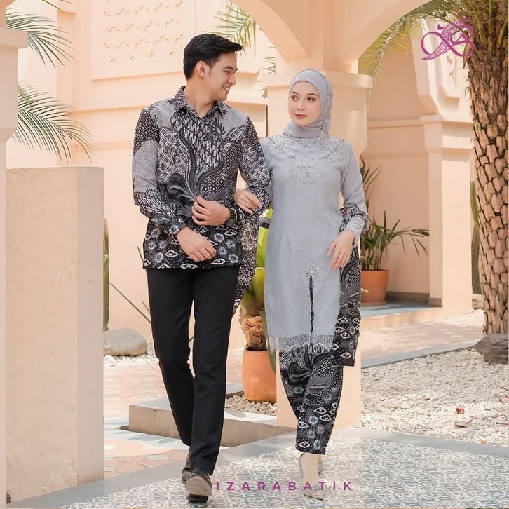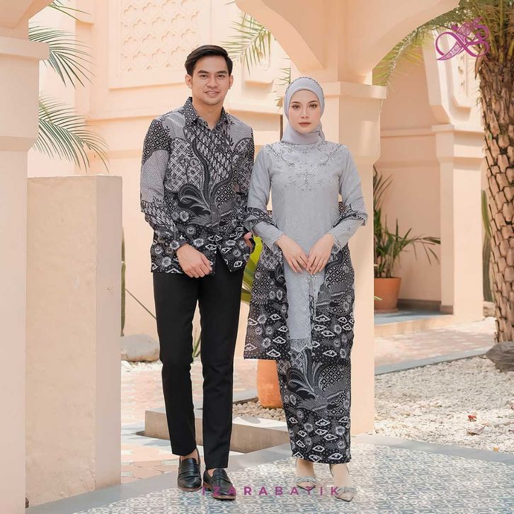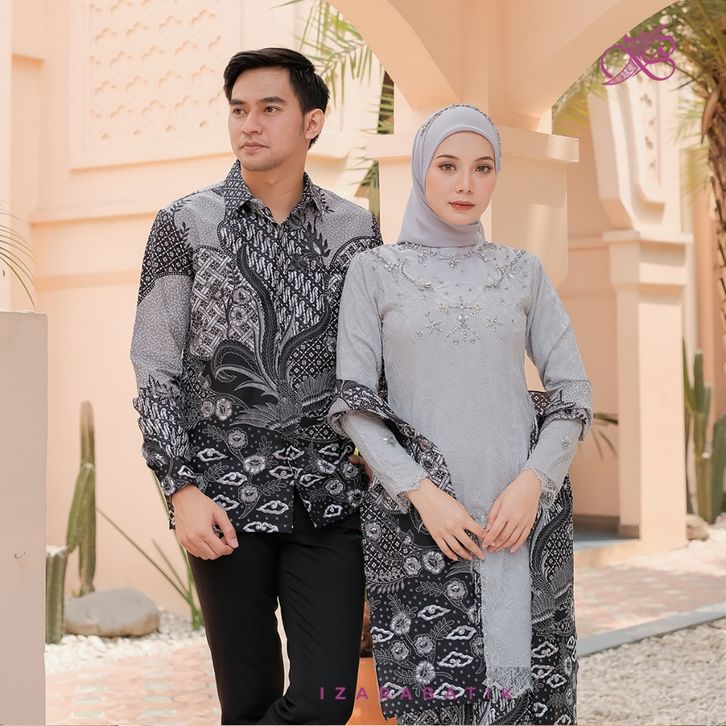 Calista Silver - Setelan Baju Kebaya Batik Modern Couple Wisuda Lamaran Kondangan