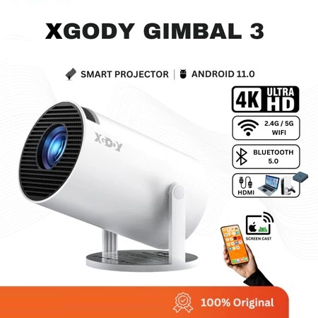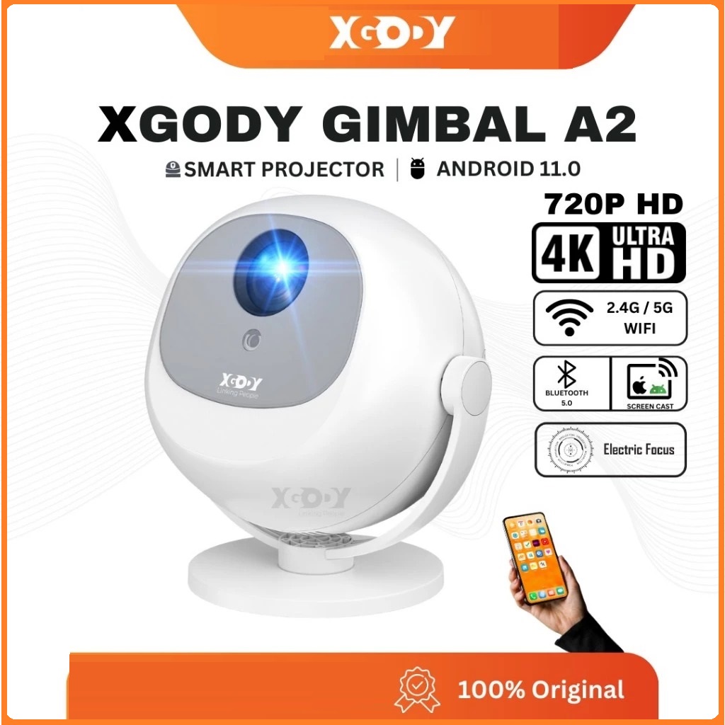 XGODY Gimbal A2 Smart Proyektor LCD -Android11 - HD 720P - Electric Focuse - 2*3W Speaker - 300 ANSI
