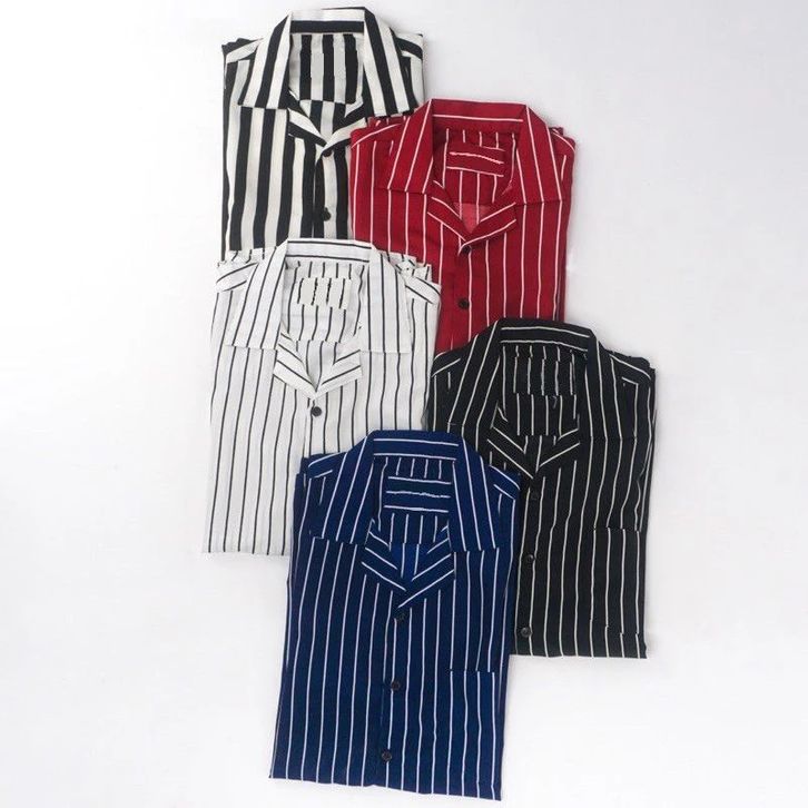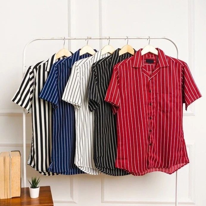 Kemeja Salur Pria | Kemeja Stripe Cowok Lengan Pendek | Bahan Woolpeach Baloteli Size M L XL