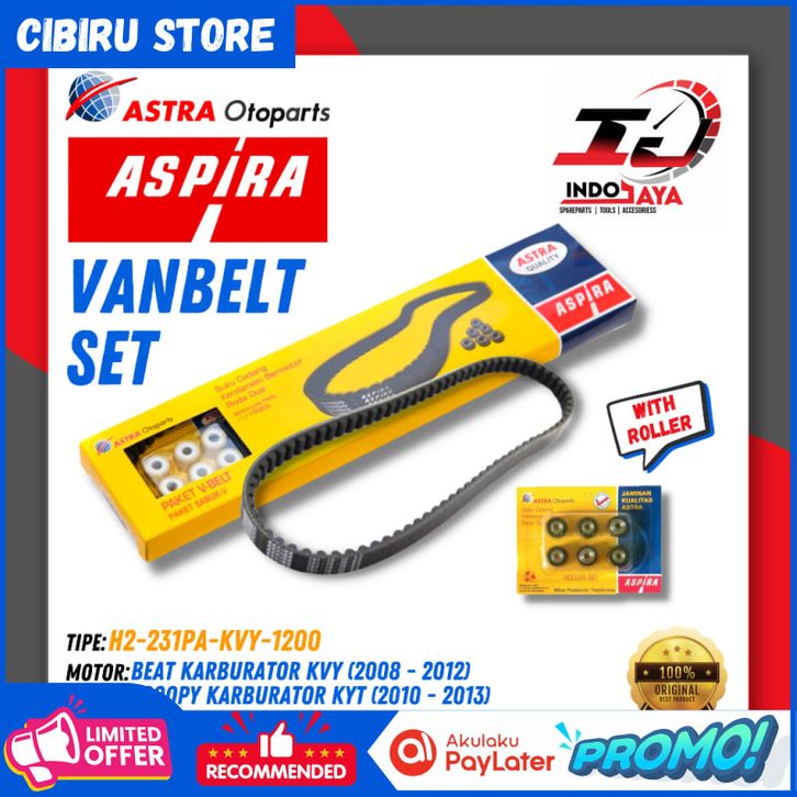 [ ] ASPIRA VANBELT + ROLLER (ASSY) BEAT, VARIO 125 150 , SPACY , SCOOPY / VBELT / V-BELT SET / FANBELT / VANBELT ASSY