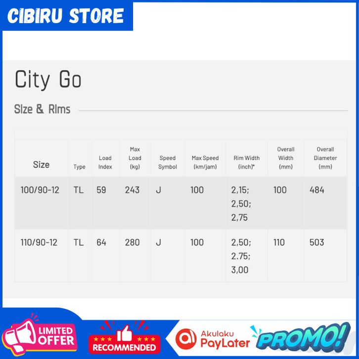 [ ] BAN LUAR TUBELESS FDR CITY GO / CITYGO RING 12 (100/90-12 - 110/90-12) BAN DEPAN BELAKANG MOTOR SCOOPY / SCOOTER /