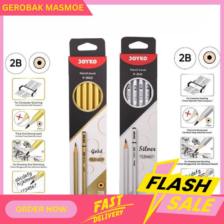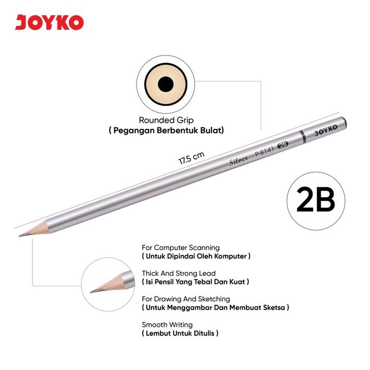 Pensil 2B Joyko P-8140 / P-8141 Silver (1 Pack 12 Pcs)