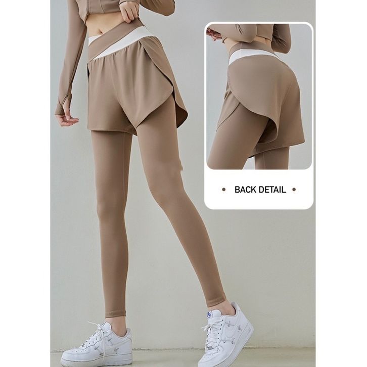 High Waist Legging Olahraga Celana Saku OlahragaWanita Dwi Lapisan 2 in 1 Senam Yoga Gym Running