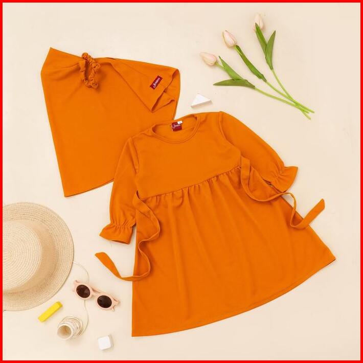 Jemico Dress Gamis Anak Bayi Perempuan Usia 6 12 Bulan Jersey Set Jilbab Baju Muslim Lembut