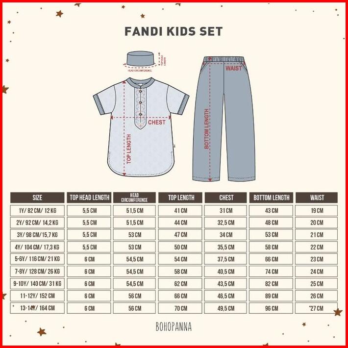 0-6M PLAYSUIT, 6-12M PLAYSUIT, 1Y SET, 2Y SET, 3Y SET, 4Y SET, 5-6Y SET, 7-8Y SET, 9-10Y SET, 11-12Y SET, 13-14Y SET, ADULT M (TOP), ADULT L (TOP), ADULT XL (TOP), ADULT XXL (TOP)