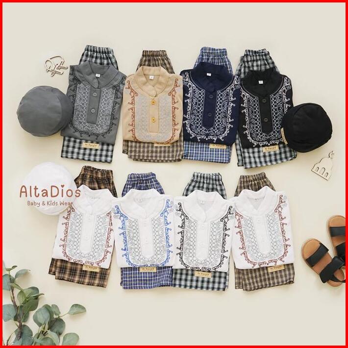 Altadiosbaby Kado Ar Rasyid Setelan Sarung Baju Koko Peci Bayi Premium Set Sarkoci Pakaian Aqiqah Anak New Born Baby Kop
