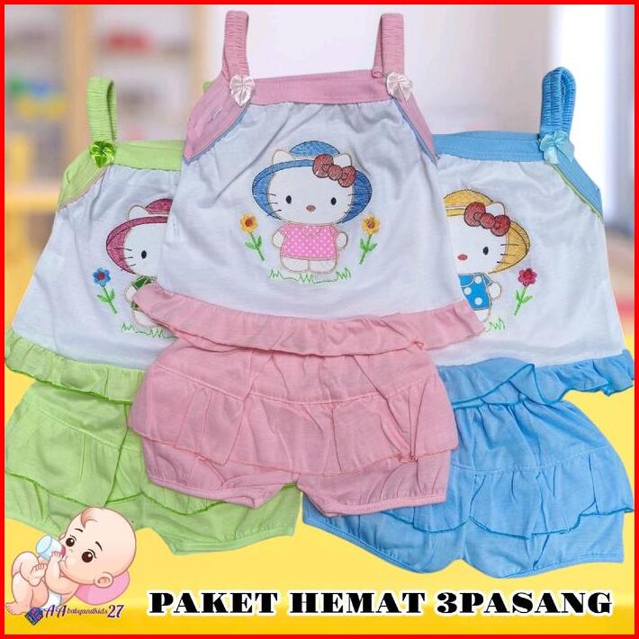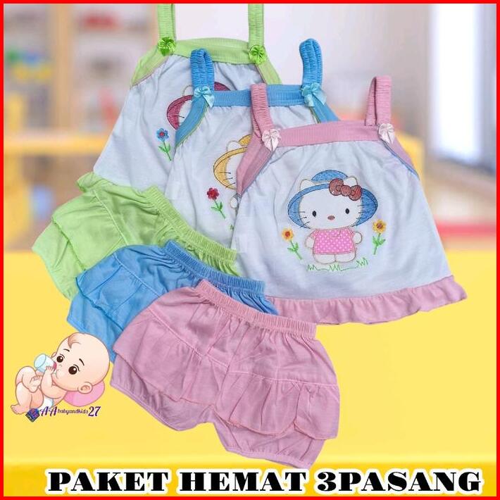 Terlaris Paket Hemat 3pasang Setelan Singlet Bayi Perempuan Yukensi Model Bordir Baju Dress Bayi Anak Cewek Baru Lahir L