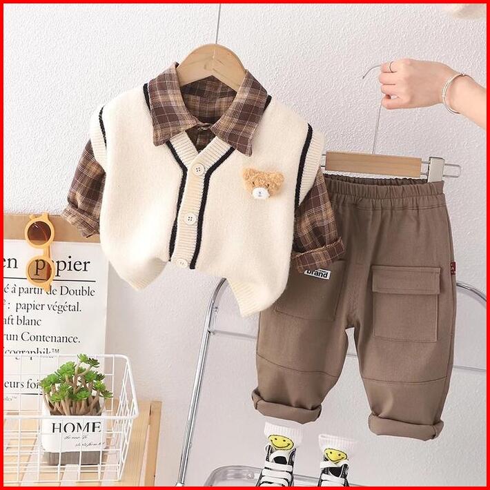 Candytown Setelan 3in1 Kemeja Bayi Anak Laki-laki Lengan Panjang Berkualitas Set Stanley Ebv