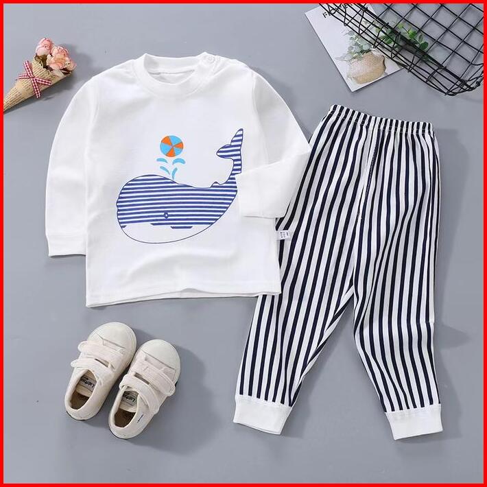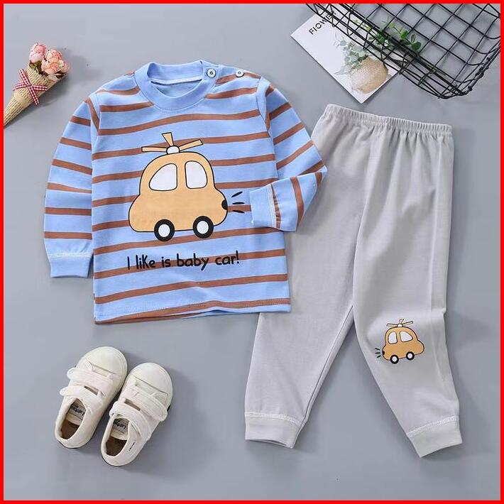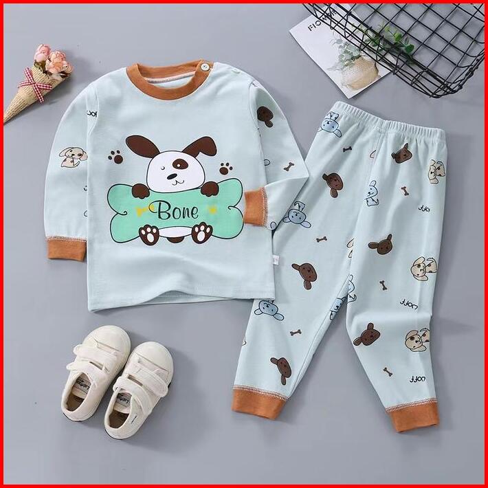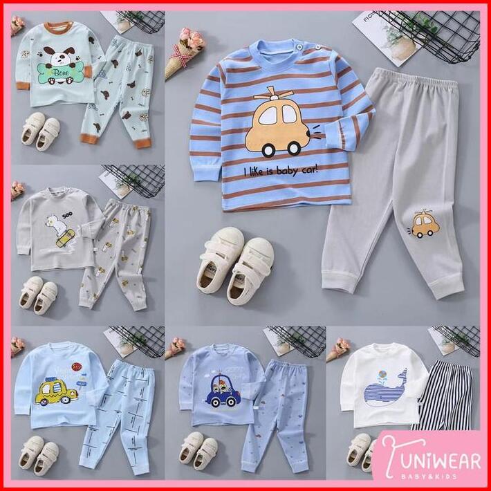 Uniwear Baju Tidur Anak 0-5tahun Setelan Piyama Bayi Set Lengan Panjang Bahan Lembut Stelan Bayi Katun