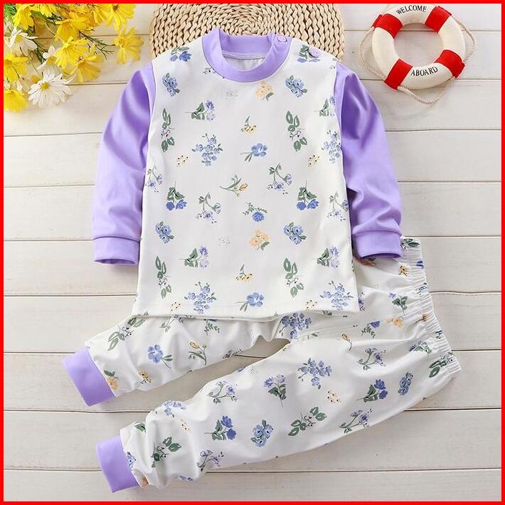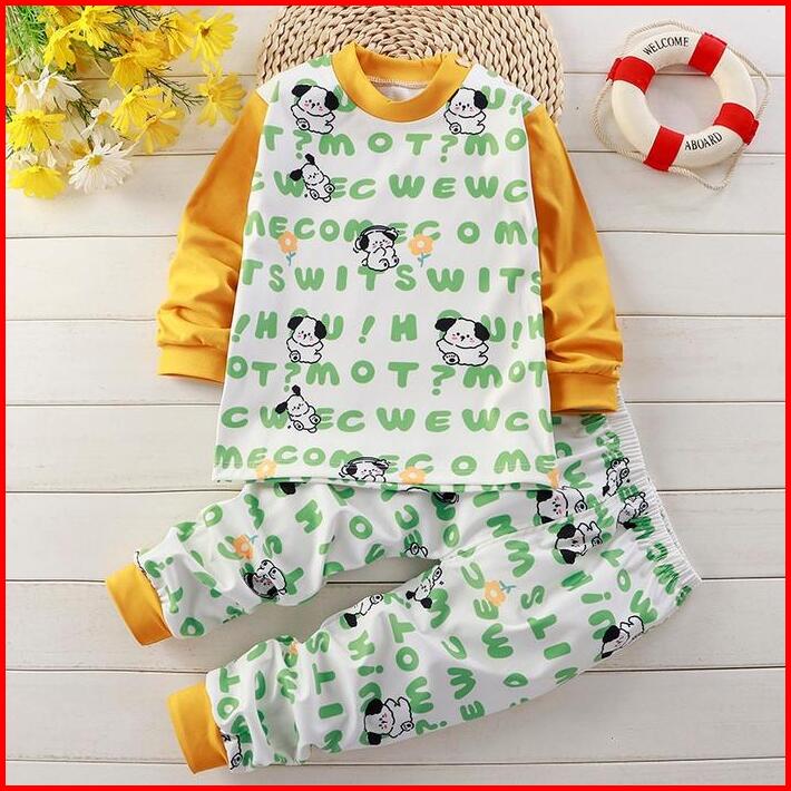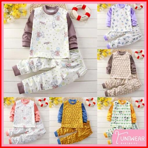 Uniwear Baju Tidur Anak Setelan Piyama Bayi Set Lengan Panjang Bahan Katun Lembut Cotton