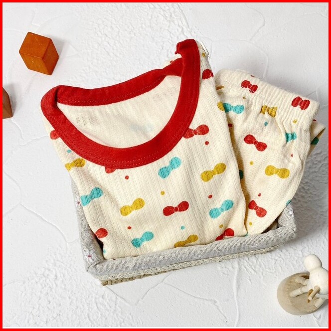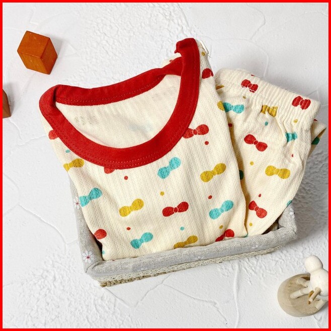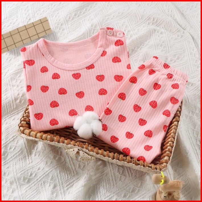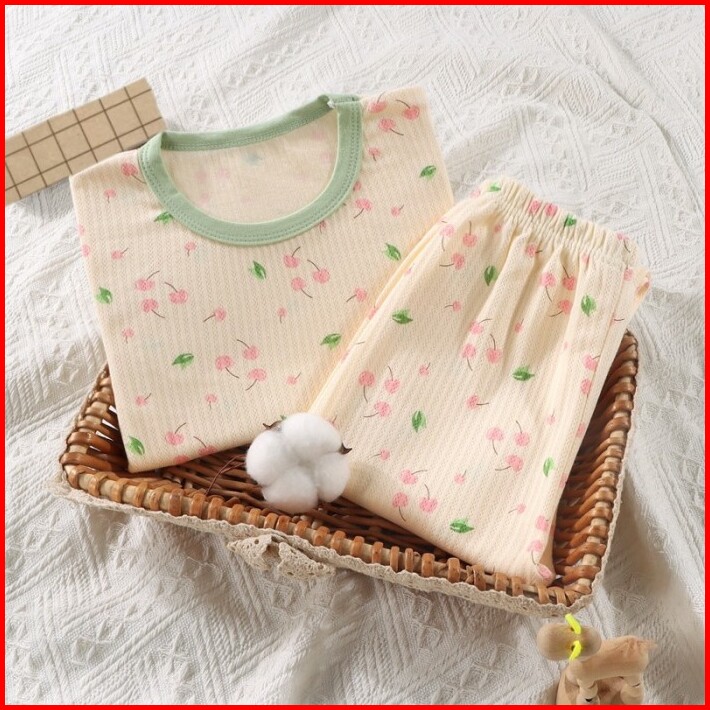 Junecollections Baju Tidur Anak Setelan Piyama Bayi Set Lengan Panjang Bahan Lembut Piyama Anak Motif Daun Pita Cherry B