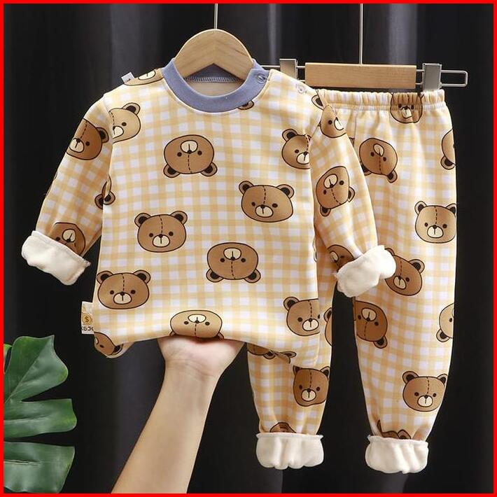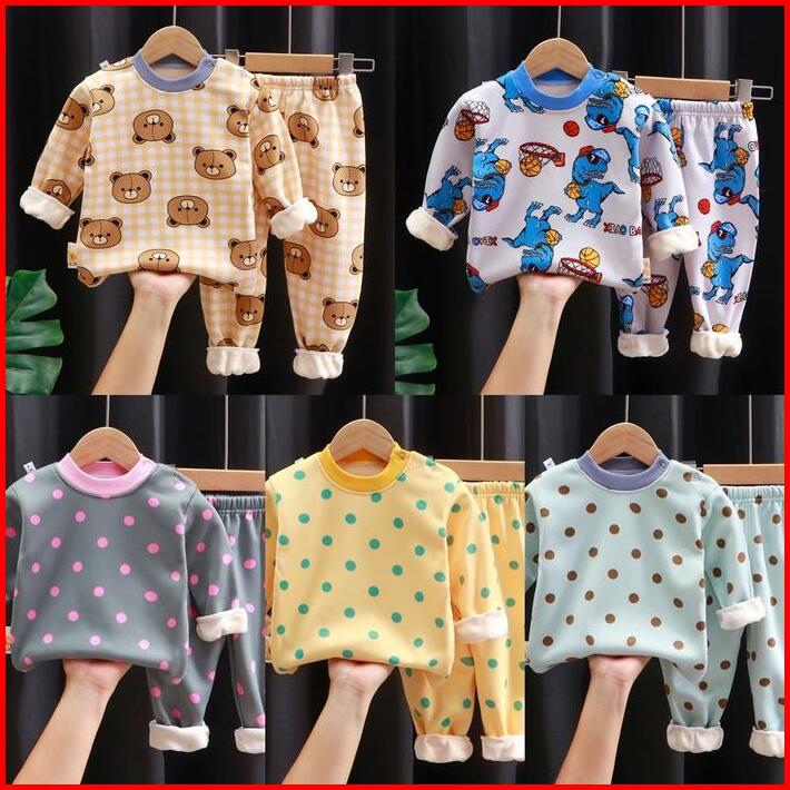 Junecollections Baju Tidur Anak Setelan Piyama Bayi Set Lengan Panjang Bahan Tebal Nyaman 160-164 Unisex