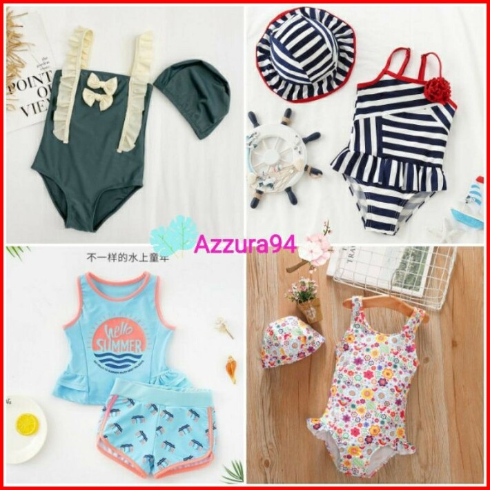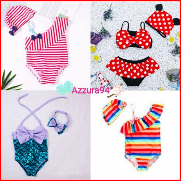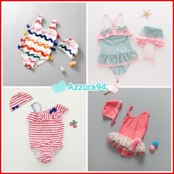 Baby Swimsuit Set Bikini Topi Baju Renang Bayi Anak Swan Cute Swimme