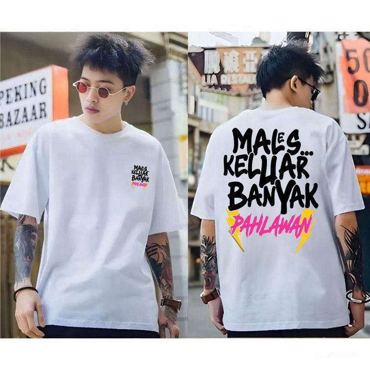 Kaos Premium Pria Tshirt Distro Motif MALAS KELUAR BANYAK PAHLAWAN / Kaos Distro Premium Cowok Dewasa / Baju Atasan