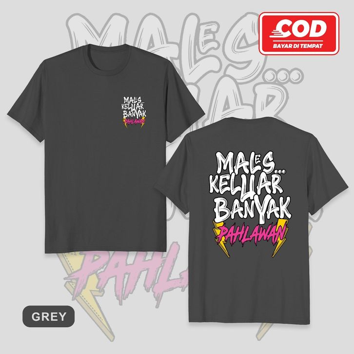 Kaos distro MALAS KELUAR BANYAK PAHLAWAN Viral terbaru baju Motif KATA KATA Pria wanita Tersedia 12 warna - B76