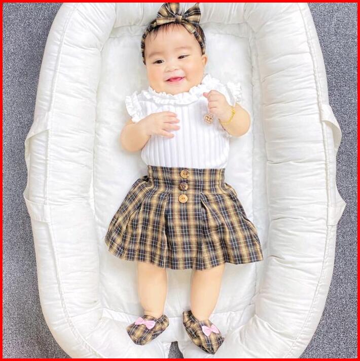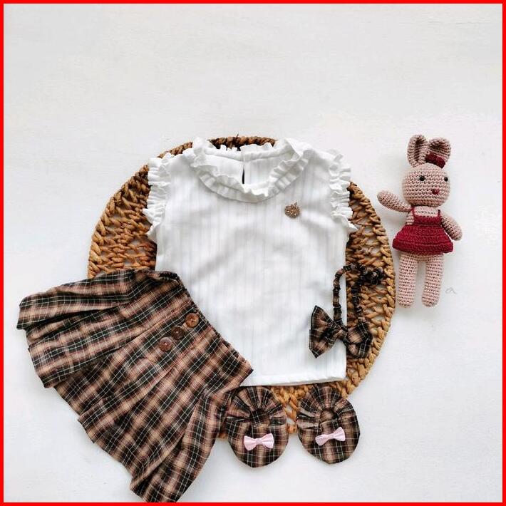 Baju Anak Bayi Perempuan Setelan Rok Knit Tartan Skirt Set Sepatu Bando Fashion Baby Girl Cewek Bross Lucu