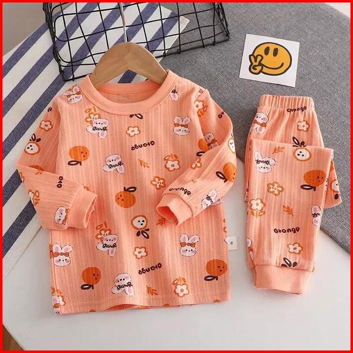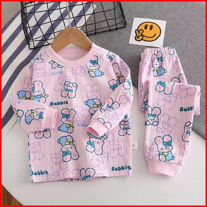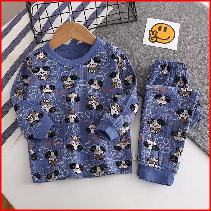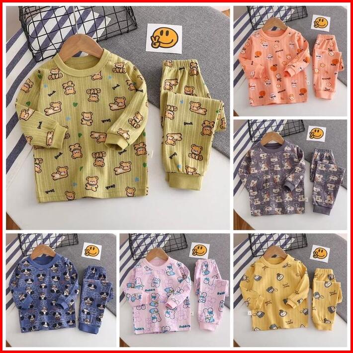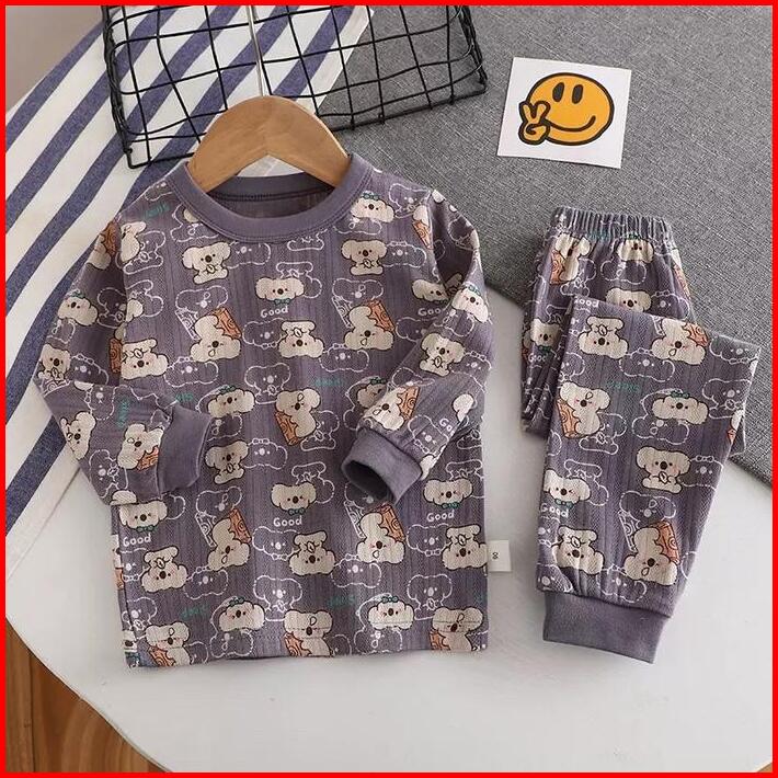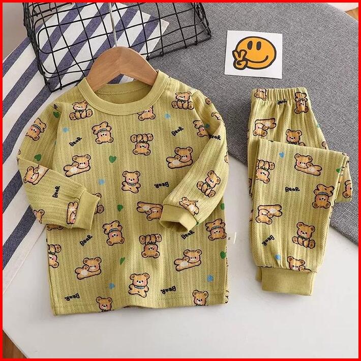 Junecollections Baju Tidur Anak Setelan Piyama Bayi Set Lengan Panjang Bahan Lembut Piyama Motif Teddy Bear Beruang Baha