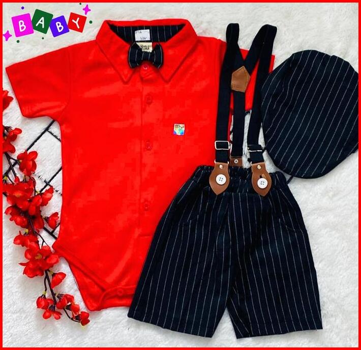 Set Baju Jumper Anak Laki Laki Br4nded Motif Jumper Suspender Usia Baby 0-2 Th Bayi Merah
