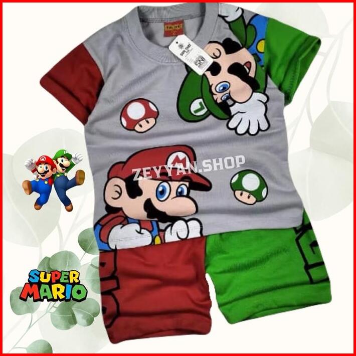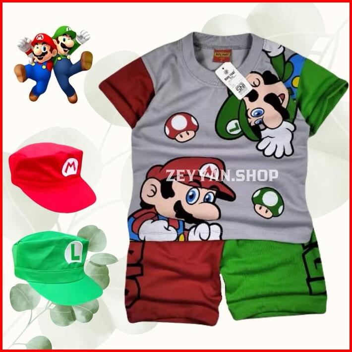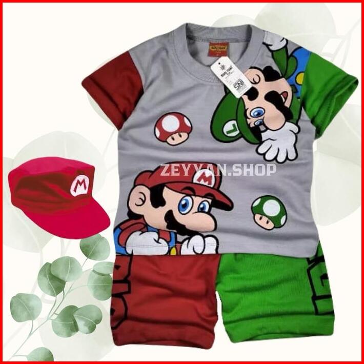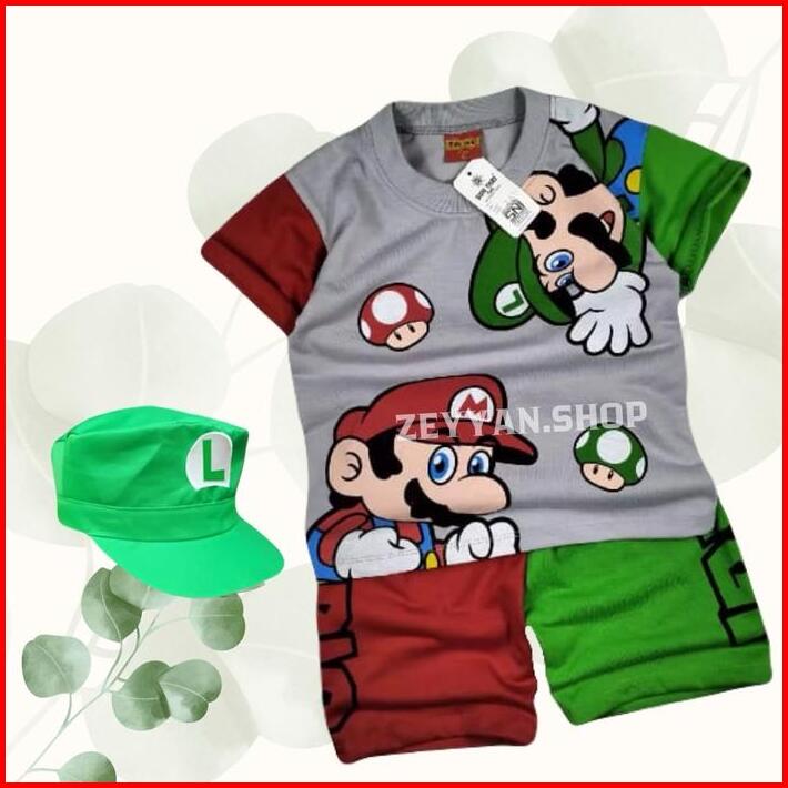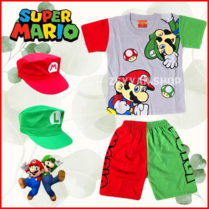 Baju Super Mario Setelan Anak Laki Laki Dan Perempuan Ada Topi Untuk Umur 1-10 Tahun Motif Terbaru Katun Cewek Parsel Ba