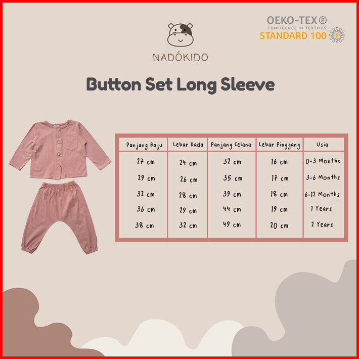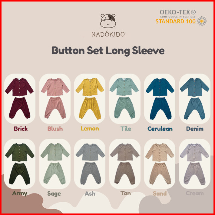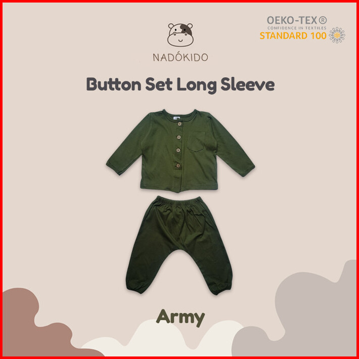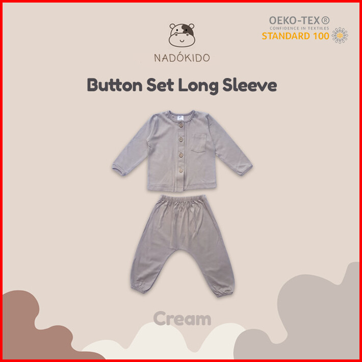 Nadokido Button Set Long Sleeve Kaos Piyama Baju Tidur Setelan Anak Cewe Cowo Bayi Polos 0
