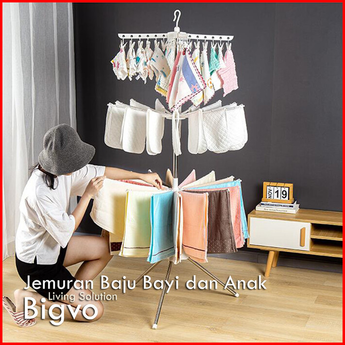 Jemuran Baju Lipat Outdoor3 Tingkat Gantungan Baju Anak Dan Bayi