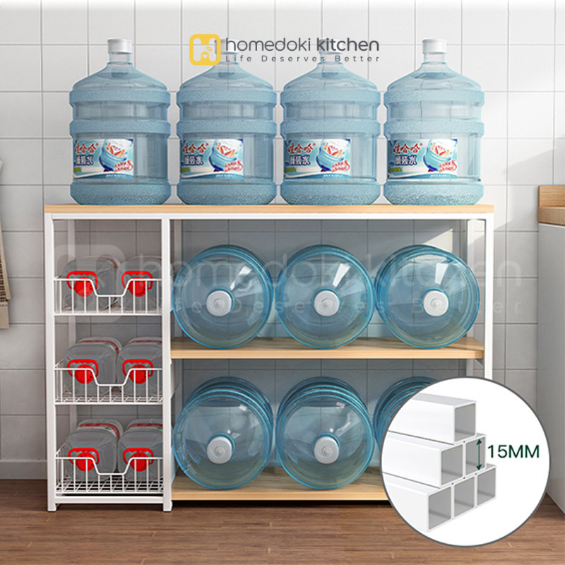 LEMARI DAPUR RAK PIRING KAYU BESI SUSUN KABINET OVEN BUMBU BESAR JUMBO MINIMALIS SERBAGUNA