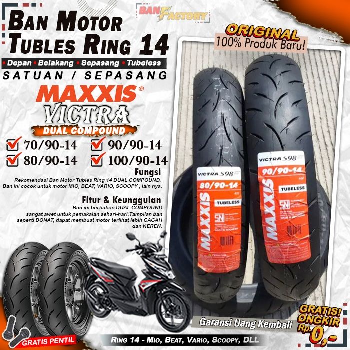 [ FREE ONGKIR ] Ban Motor Beat Maxxis Victra Ring 14 Tubles Ban Motor Tubeless Mio Beat Vario Scoopy Ring 14 Tubles