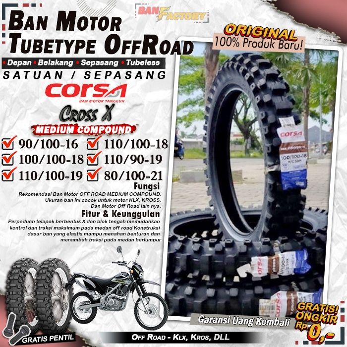 [ FREE ONGKIR ] Ban Motor Trail Corsa MT Cross X / R Non Tubeless Ban Non Tubles Depan Belakang Motor Ring 18 19 21
