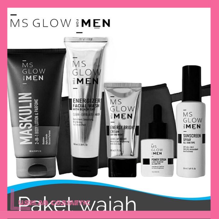 Paket Wajah MS Glow Men Lengkap Energizer Facial Wash Energy Bright Cream Day and Night Energy Serum Sunscreen