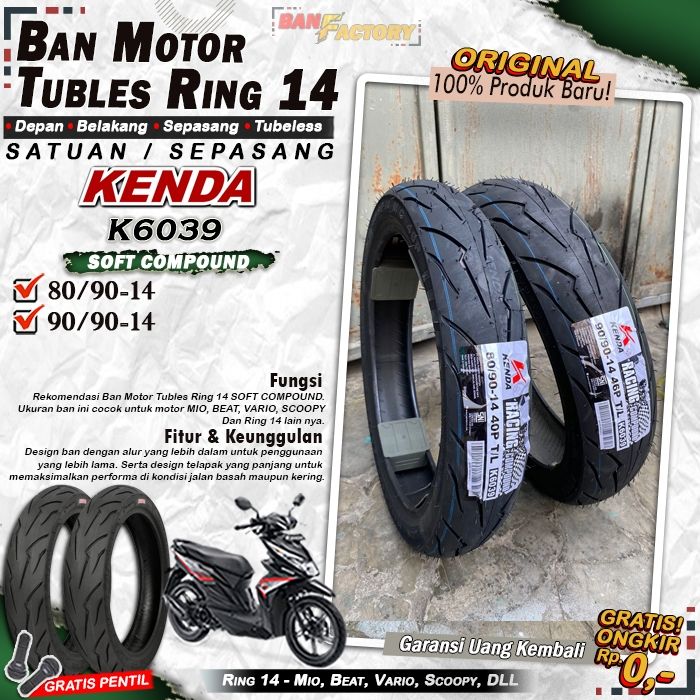[ FREE ONGKIR ] Ban Motor Beat Kenda K6039 Ring 14 Tubles Ban Motor Tubeless Mio Beat Vario Scoopy Ring 14 Tubles