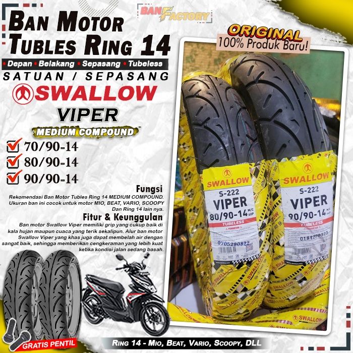 [ FREE ONGKIR ] Ban Motor Beat Swallow Viper Ring 14 Tubles Ban Motor Tubeless Mio Beat Vario Scoopy Ring 14 Tubles