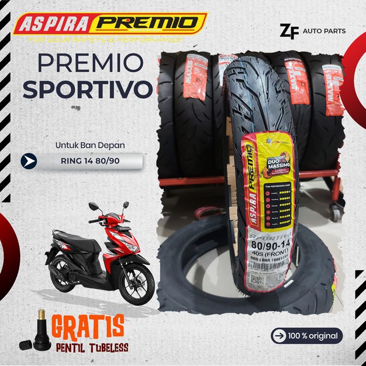 [ FREE ONGKIR ] PAKET / Satuan Ban Motor Matic Aspira Premio Sportivo Ring 14 80/90 dan 90/90 BEAT MIO VARIO GENIO