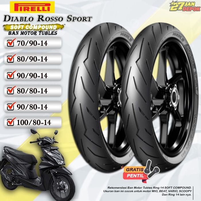 [ FREE ONGKIR ] Ban Motor Beat Pirelli Diablo Rosso Sport Ring 14 Tubles Ban Motor Mio Beat Vario Ring 14