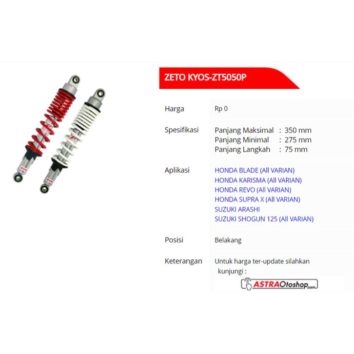 SHOCK BELAKANG SUPRA X 125 , SUPRA FIT SUPRA LAMA KARISMA REVO BLADE SHOGUN 125 SMASH ARASHI KAZE R BLITZ KYB ZETO ORI Z