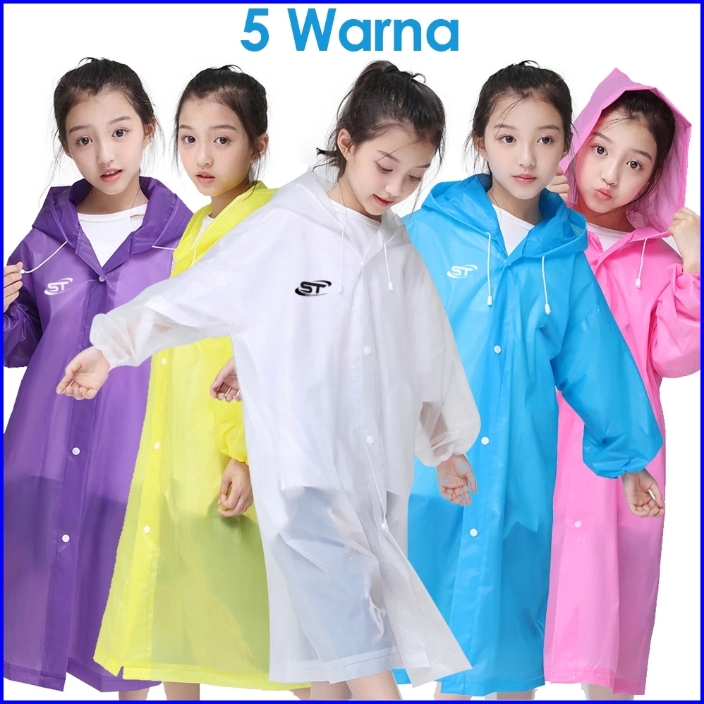 Suksestech Jas Hujan Anak Karakter Hoodie Murah Eva Ponco Lengan Polos 80628